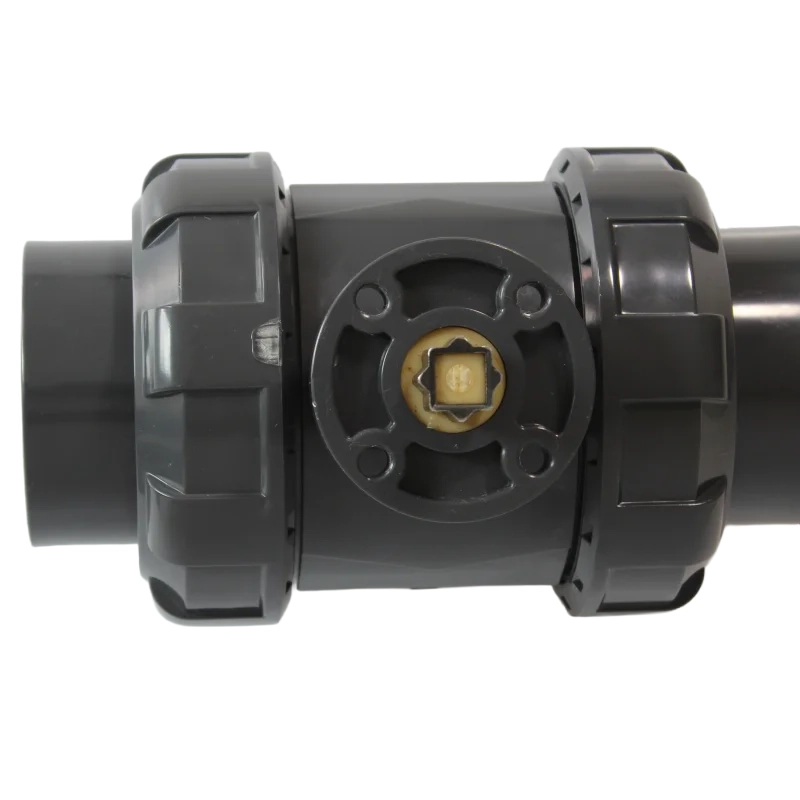 A válvula esfera dupla união industrial 2 vias, referência PCTUB da Policon Controle e Transporte de Fluidos, é projetada especificamente para atender às demandas de automação em sistemas industriais. Disponível em tamanhos de 1/2″ a 2″, essa válvula oferece uma instalação versátil, com opções de conexão por solda de encaixe, rosca ou flange, adaptando-se facilmente a uma variedade de configurações de sistemas. O corpo da válvula é fabricado em U-PVC, garantindo excelente resistência química e durabilidade, características essenciais para aplicações em ambientes industriais exigentes. Os anéis de vedação em EPDM ou FPM, juntamente com a sede em PTFE, asseguram uma vedação eficaz e duradoura, proporcionando confiabilidade e segurança no controle de fluidos. Com uma pressão nominal de PN 10, esta válvula é ideal para operações que requerem precisão e estabilidade. O grande diferencial desta válvula é a base integrada para montagem de atuador, que a torna pronta para automação desde o momento da instalação. Essa funcionalidade permite a modernização imediata dos sistemas, facilitando a transição para operações automatizadas e aumentando a eficiência operacional. Se você busca otimizar seus processos industriais com uma válvula que combine robustez e facilidade de automação, a válvula esfera dupla união industrial 2 vias pronta para atuação da Policon é a escolha perfeita. Com seu design adaptável e capacidade de integração rápida com atuadores, essa válvula oferece uma solução eficiente e confiável para suas necessidades industriais.